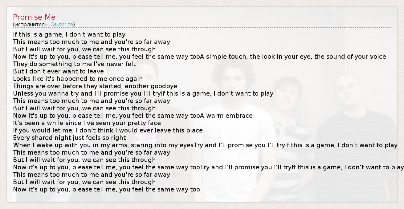 А как ты думаешь, о чем песня "Promise Me" ?