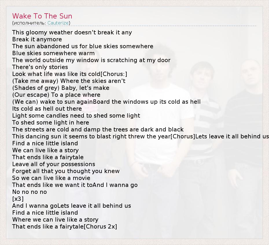 А как ты думаешь, о чем песня "Wake To The Sun" ?