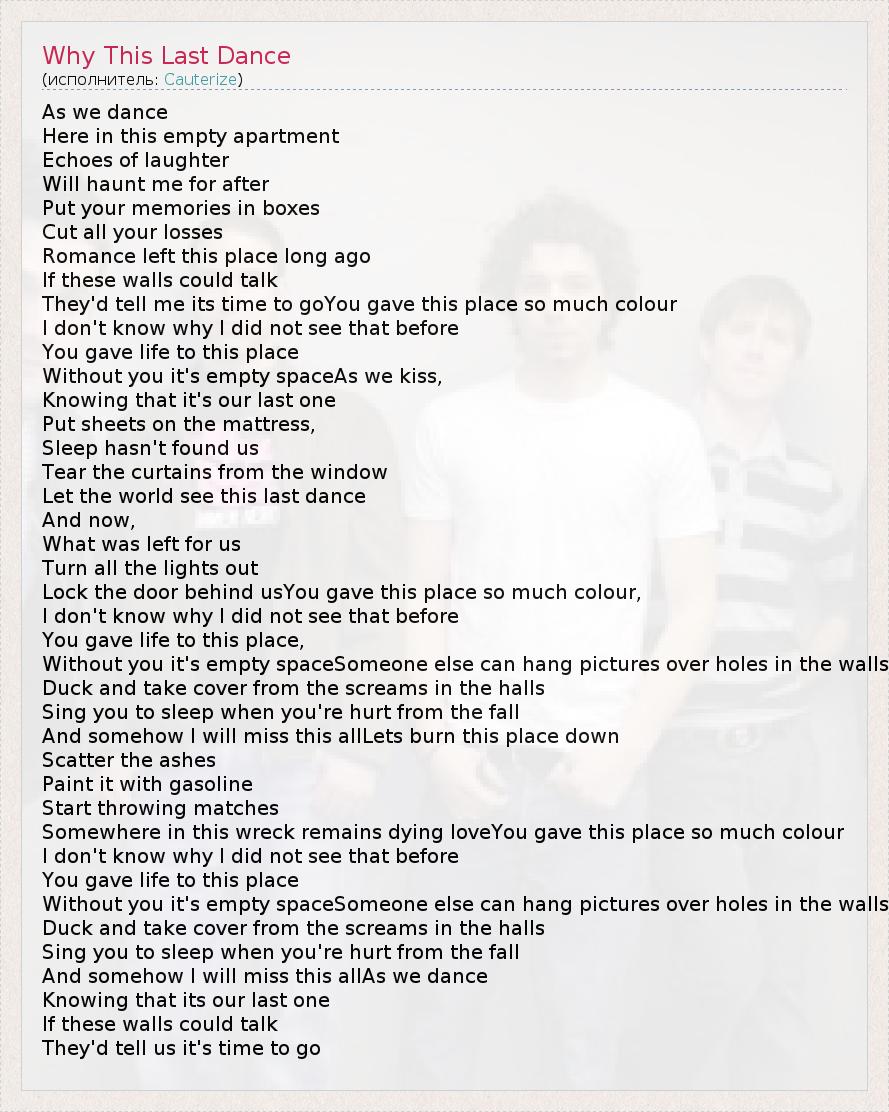 А как ты думаешь, о чем песня "Why This Last Dance" ?