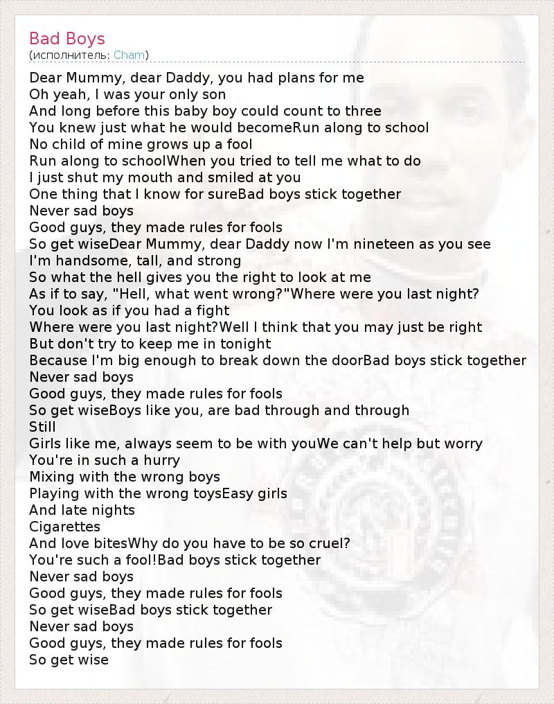 А как ты думаешь, о чем песня "Bad Boys" ?