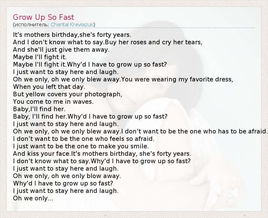 А как ты думаешь, о чем песня "Grow Up So Fast" ?