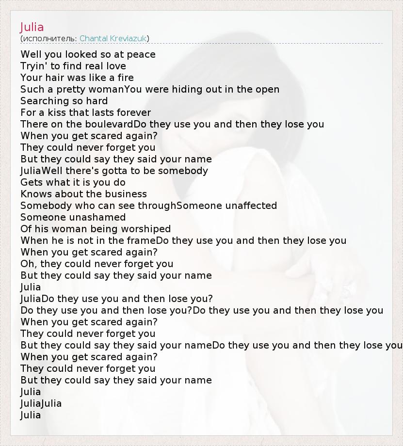 А как ты думаешь, о чем песня "Julia" ?