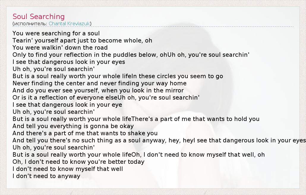 А как ты думаешь, о чем песня "Soul Searching" ?