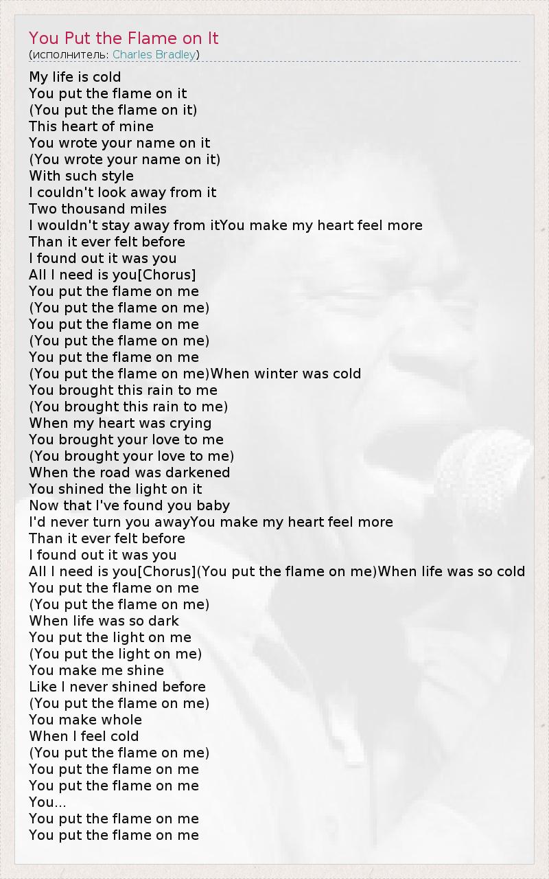 А как ты думаешь, о чем песня "You Put the Flame on It" ?