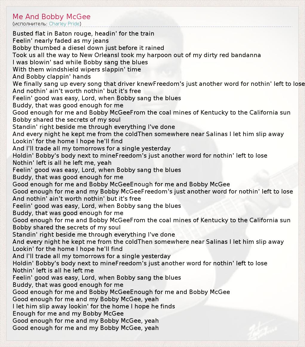 Good enough for me and Bobby McGeeEnough for me and Bobby McGee