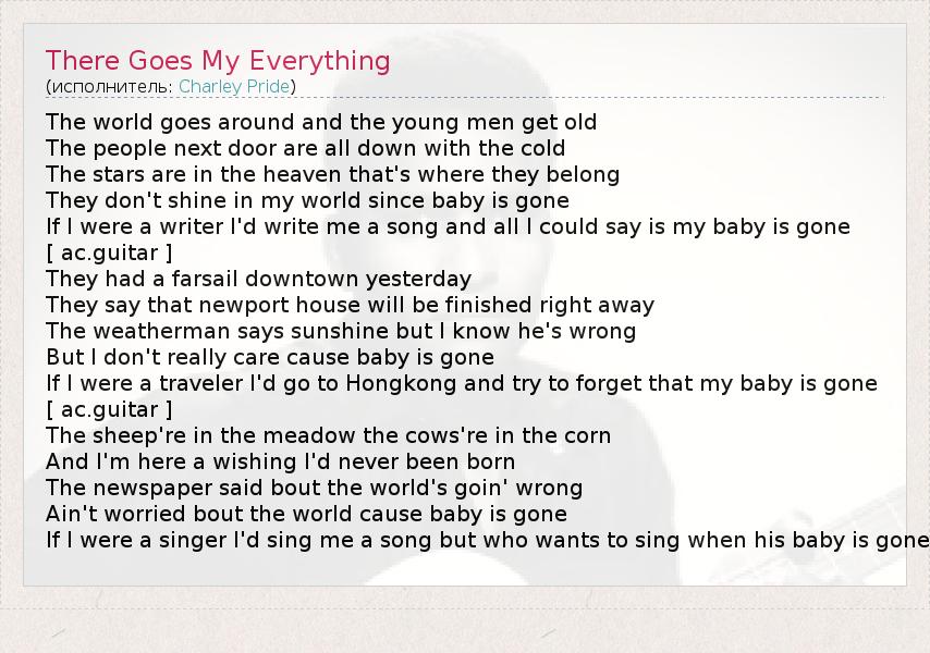 А как ты думаешь, о чем песня "There Goes My Everything" ?