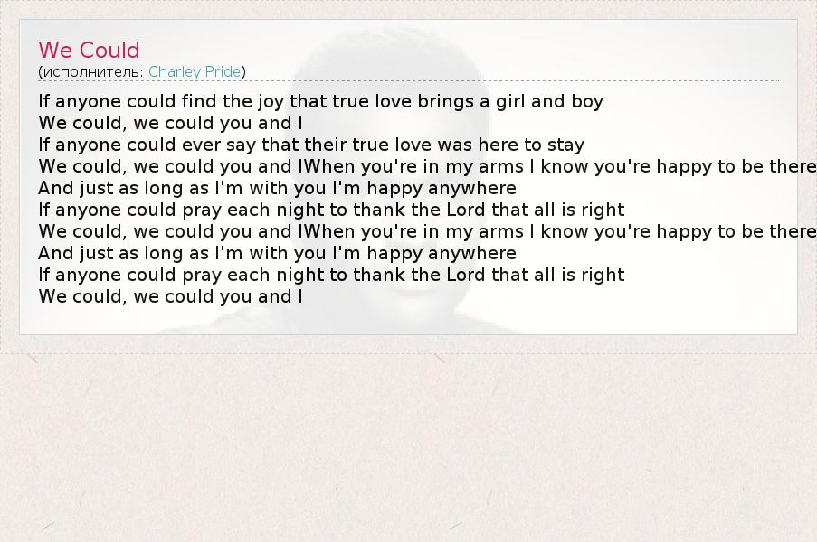 А как ты думаешь, о чем песня "We Could" ?