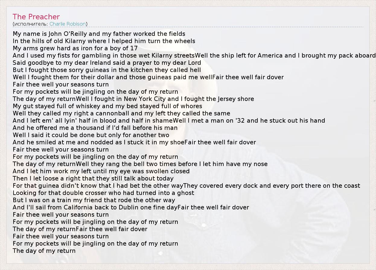А как ты думаешь, о чем песня "The Preacher" ?