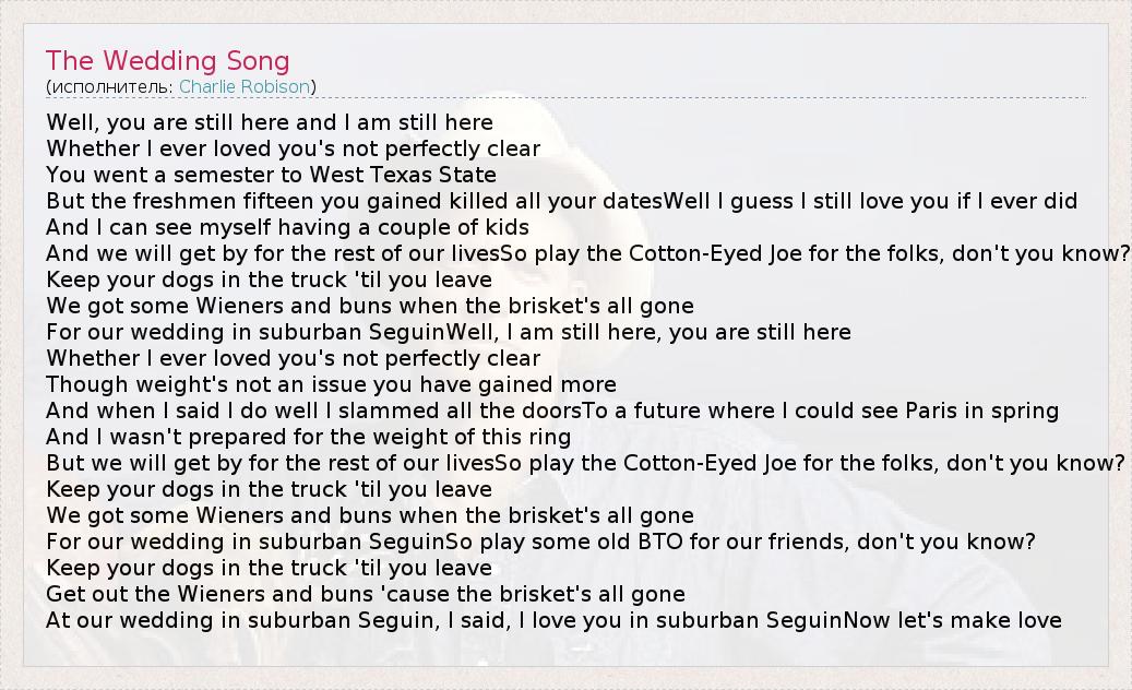 А как ты думаешь, о чем песня "The Wedding Song" ?