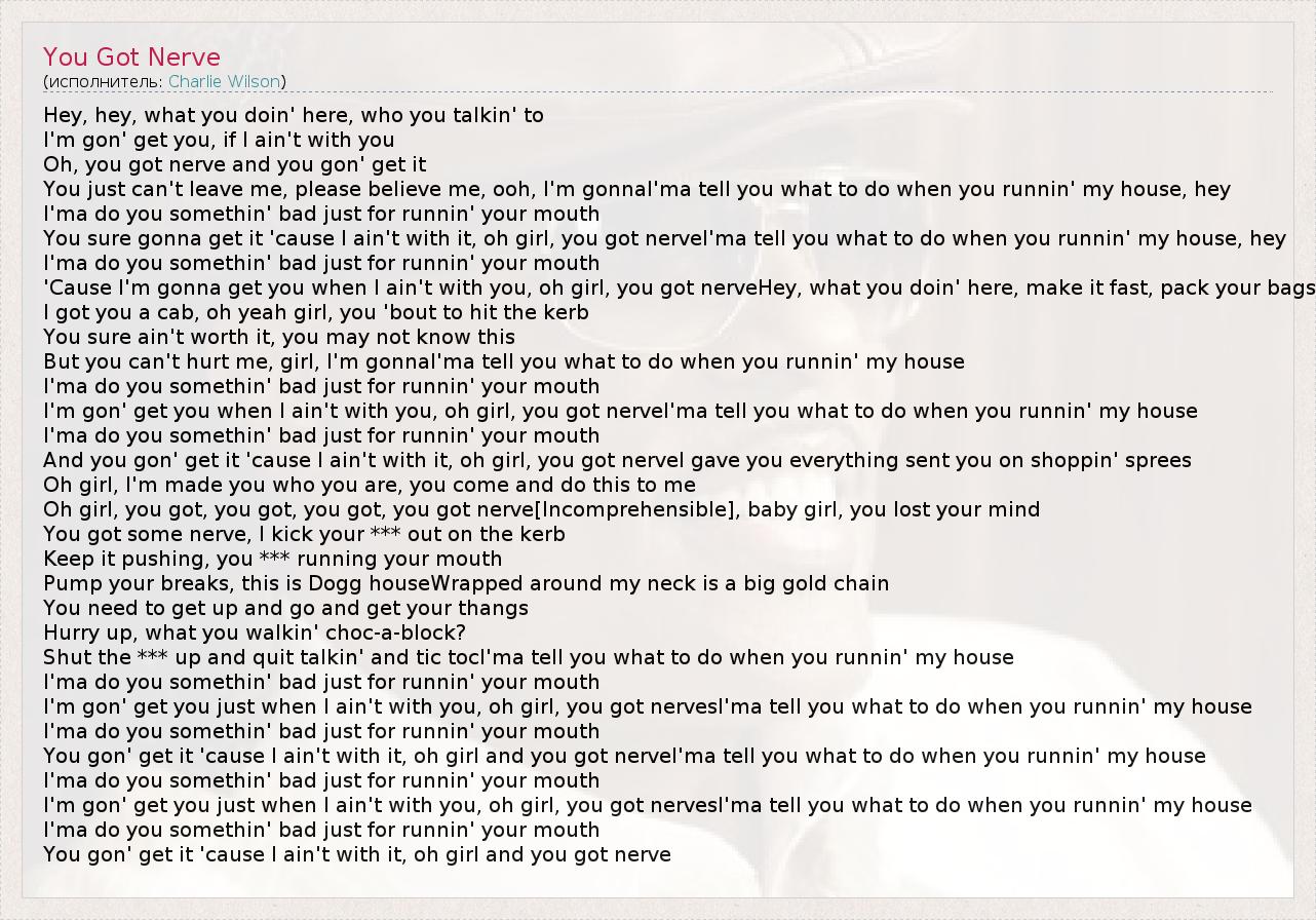 А как ты думаешь, о чем песня "You Got Nerve" ?