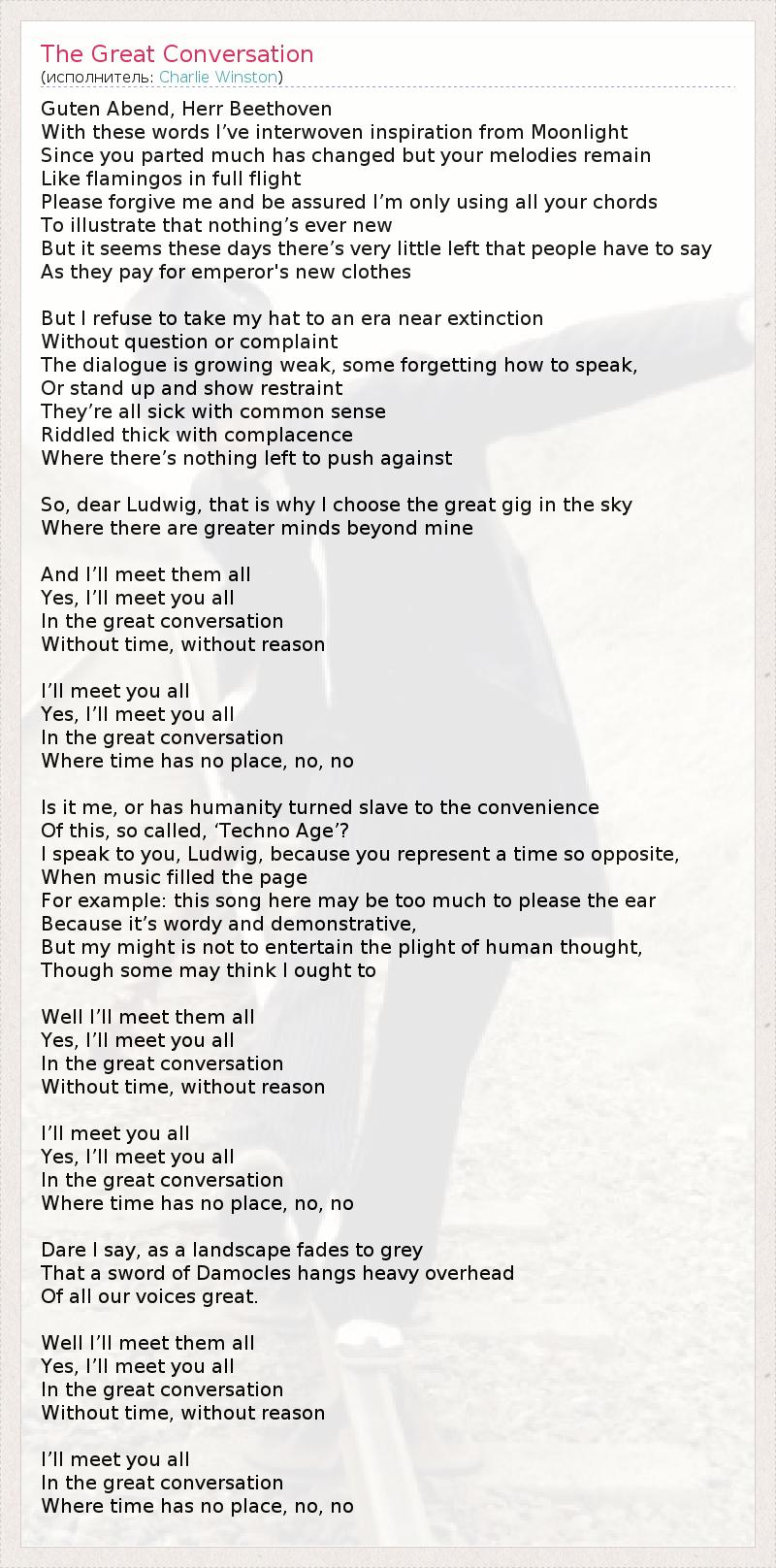 А как ты думаешь, о чем песня "The Great Conversation" ?