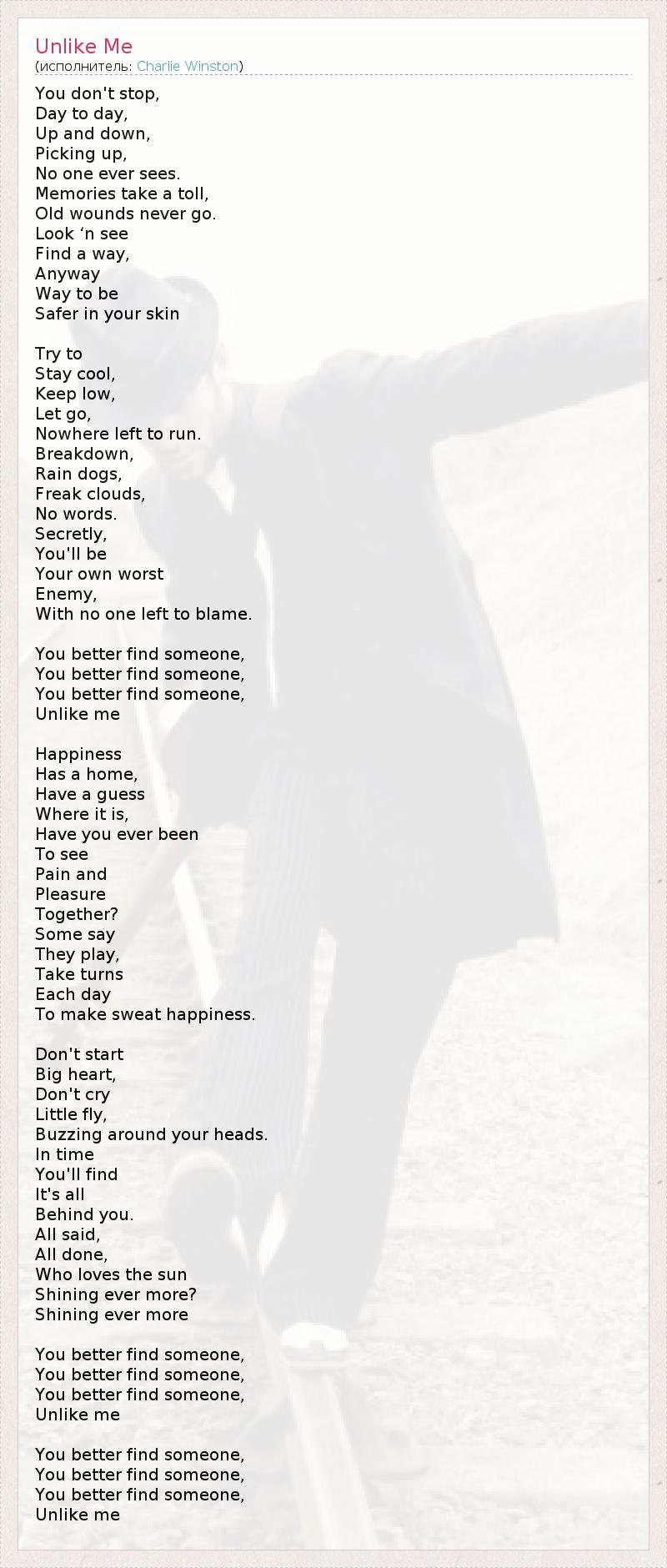 А как ты думаешь, о чем песня "Unlike Me" ?