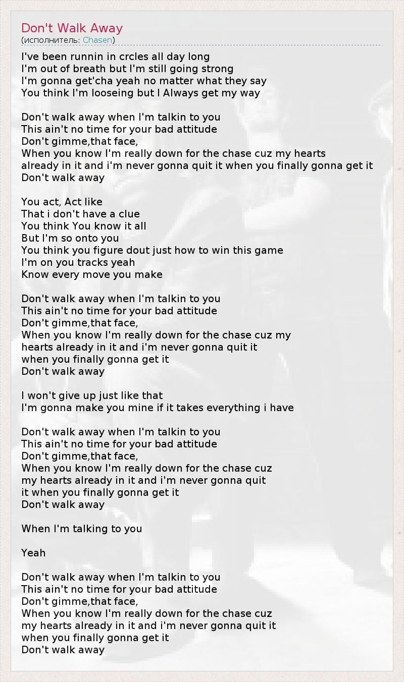 А как ты думаешь, о чем песня "Don't Walk Away" ?
