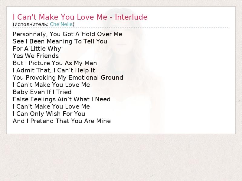 ГлавнаяИсполнителиChe'NelleI Can't Make You Love Me - Interlude