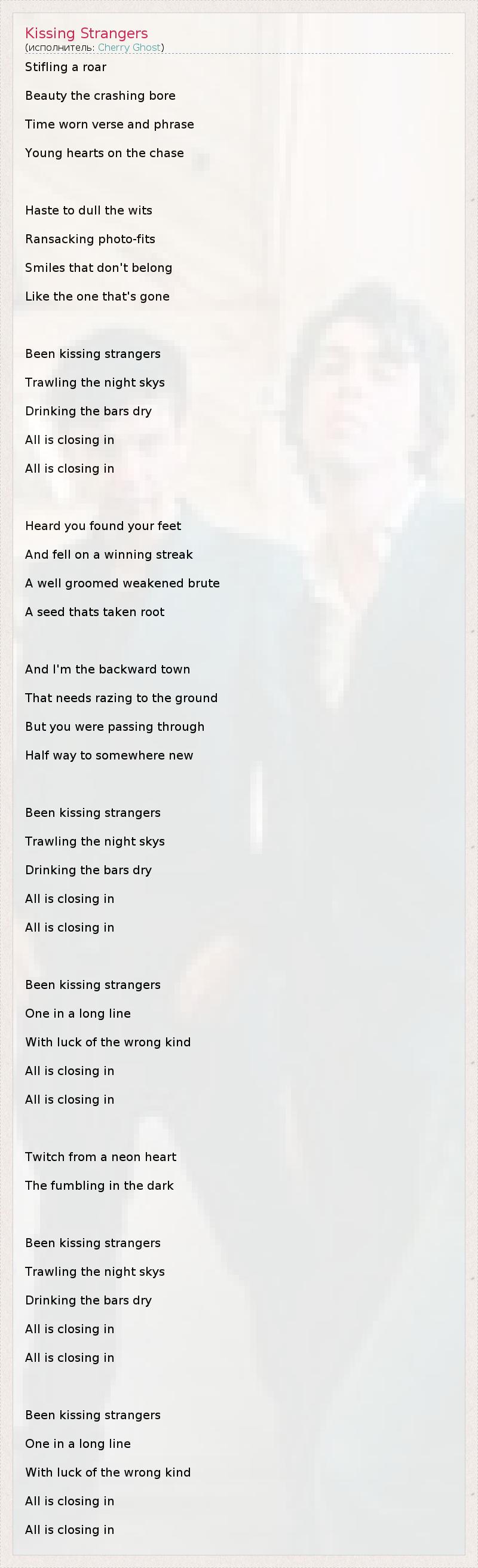 А как ты думаешь, о чем песня "Kissing Strangers" ?