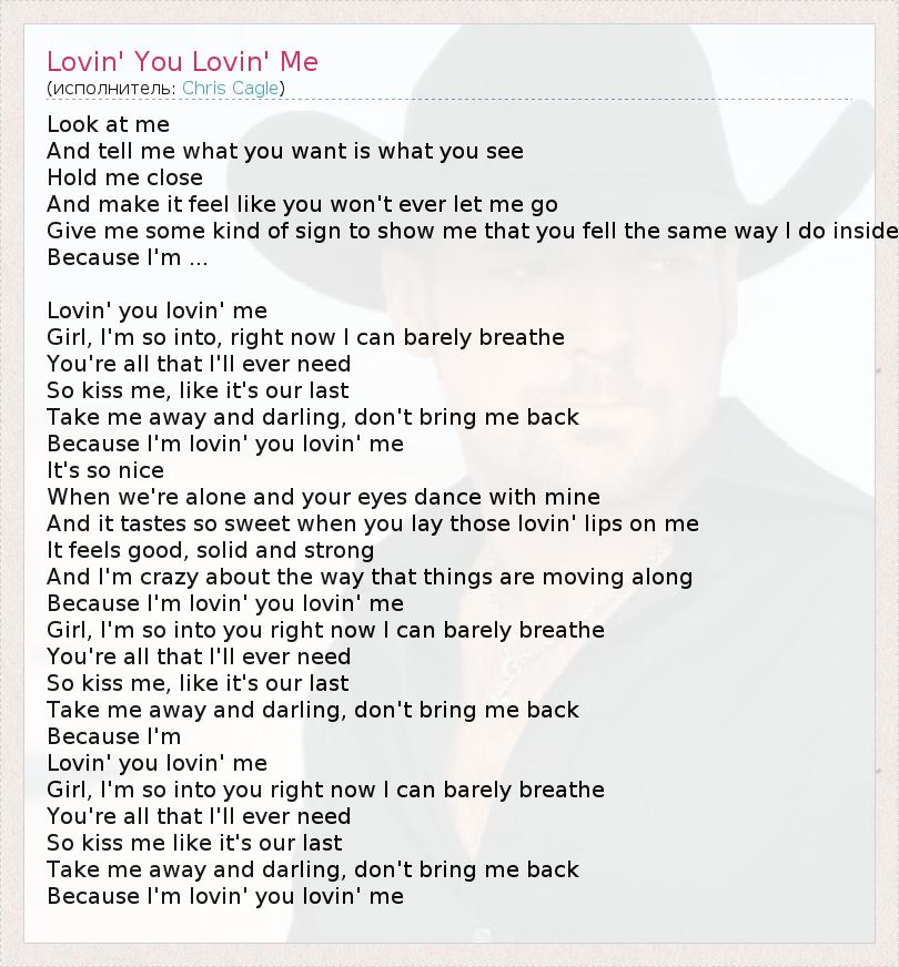 А как ты думаешь, о чем песня "Lovin' You Lovin' Me" ?