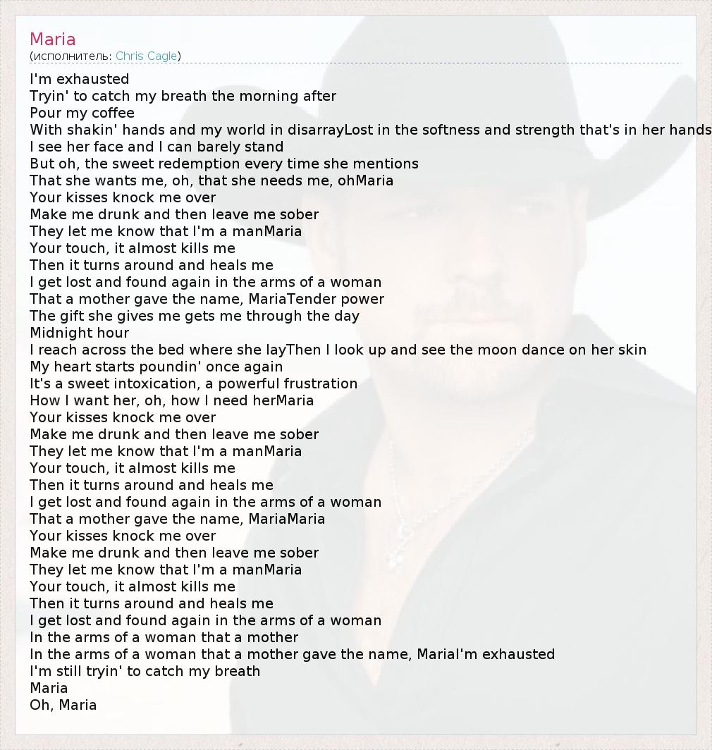 In the arms of a woman that a mother gave the name, MariaI'm exhausted