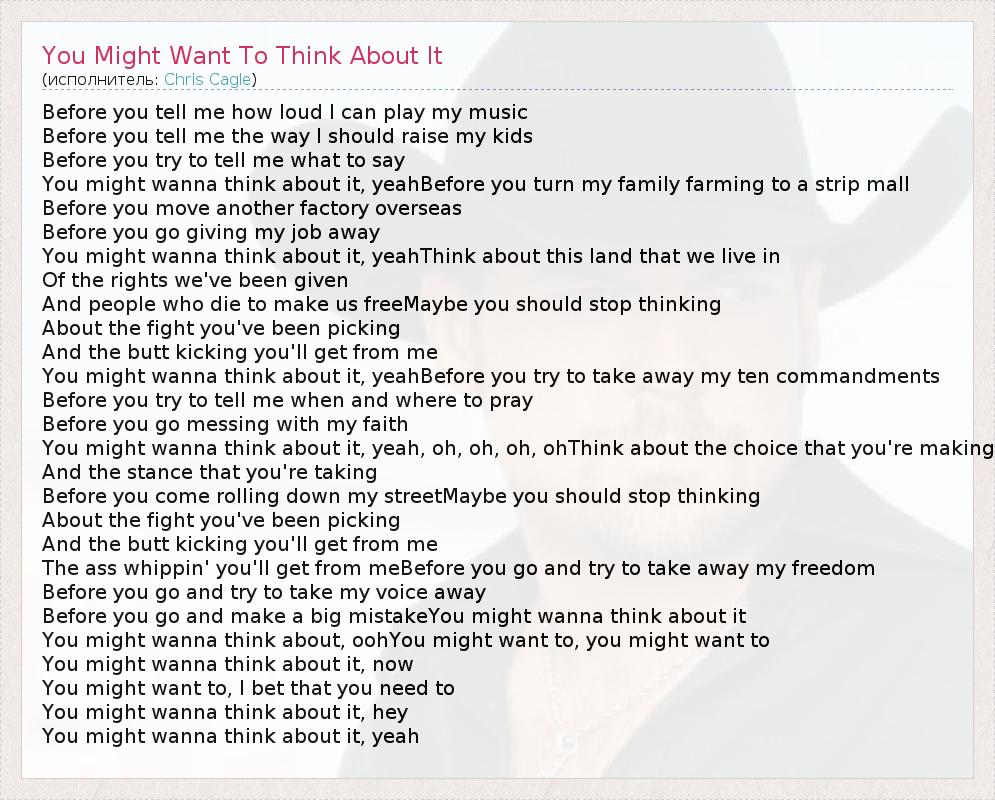 А как ты думаешь, о чем песня "You Might Want To Think About It" ?