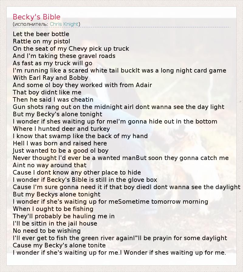 А как ты думаешь, о чем песня "Becky's Bible" ?