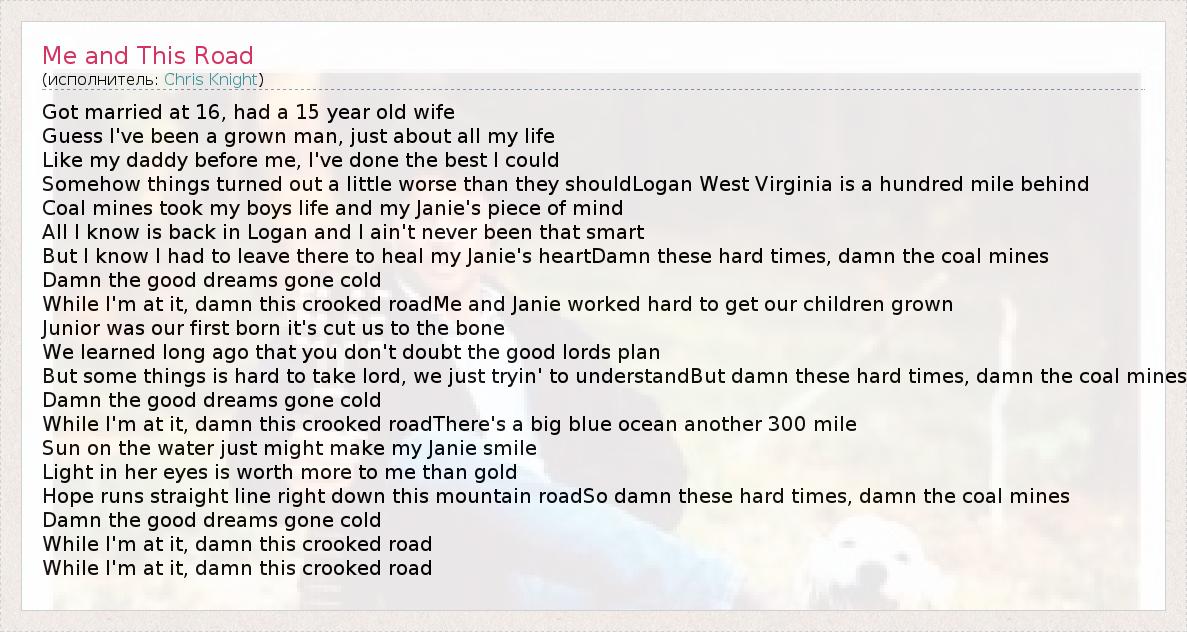 А как ты думаешь, о чем песня "Me and This Road" ?