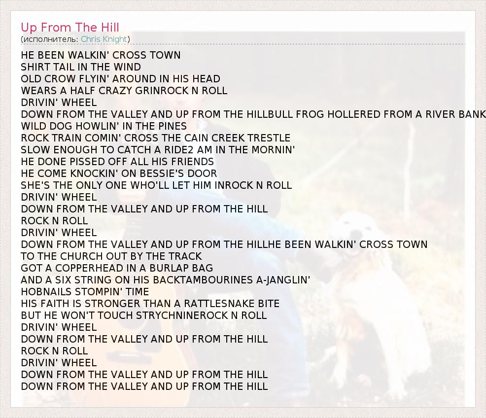 А как ты думаешь, о чем песня "Up From The Hill" ?