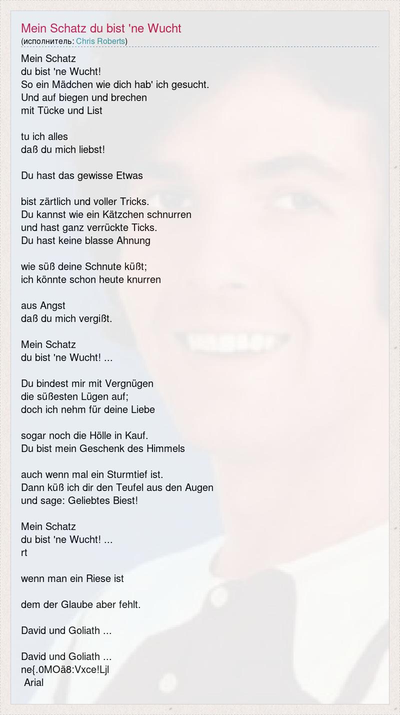 ГлавнаяИсполнителиChris RobertsMein Schatz du bist 'ne Wucht