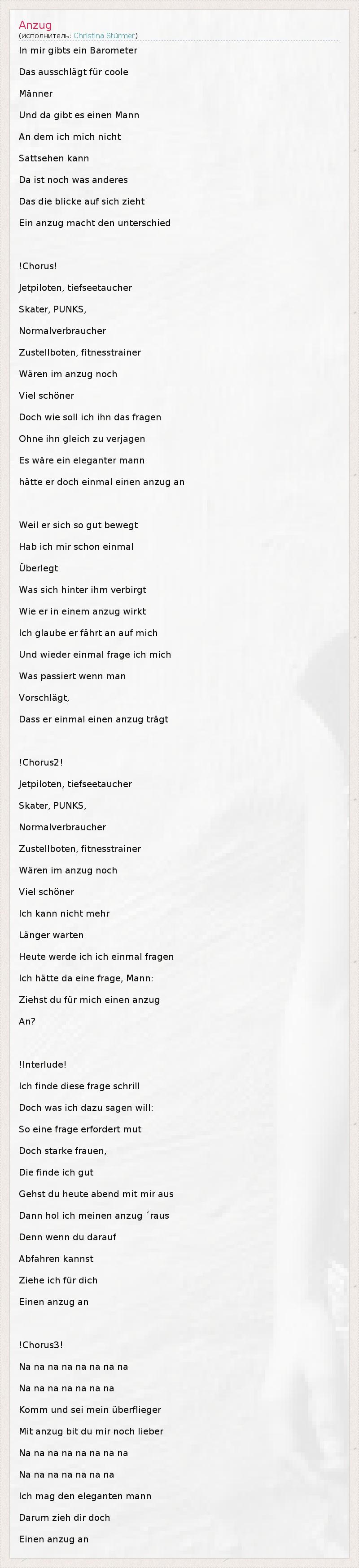 А как ты думаешь, о чем песня "Anzug" ?