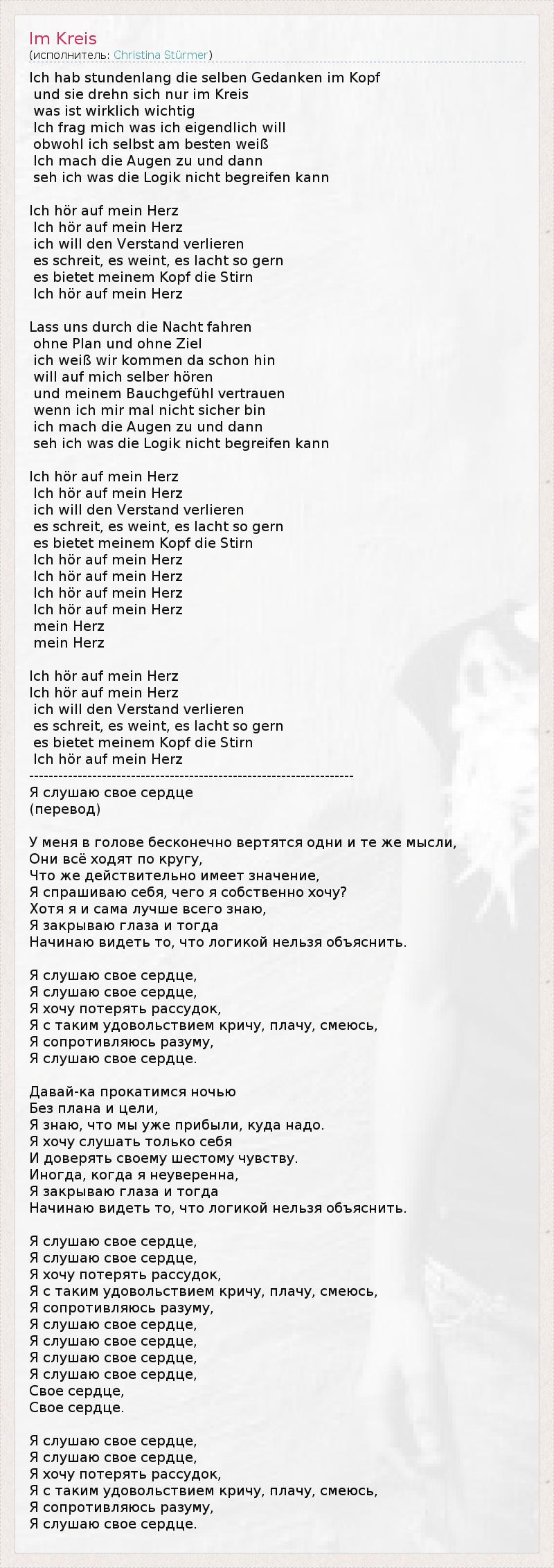 А как ты думаешь, о чем песня "Im Kreis" ?