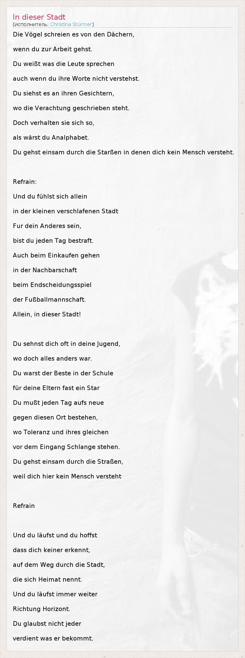 А как ты думаешь, о чем песня "In dieser Stadt" ?