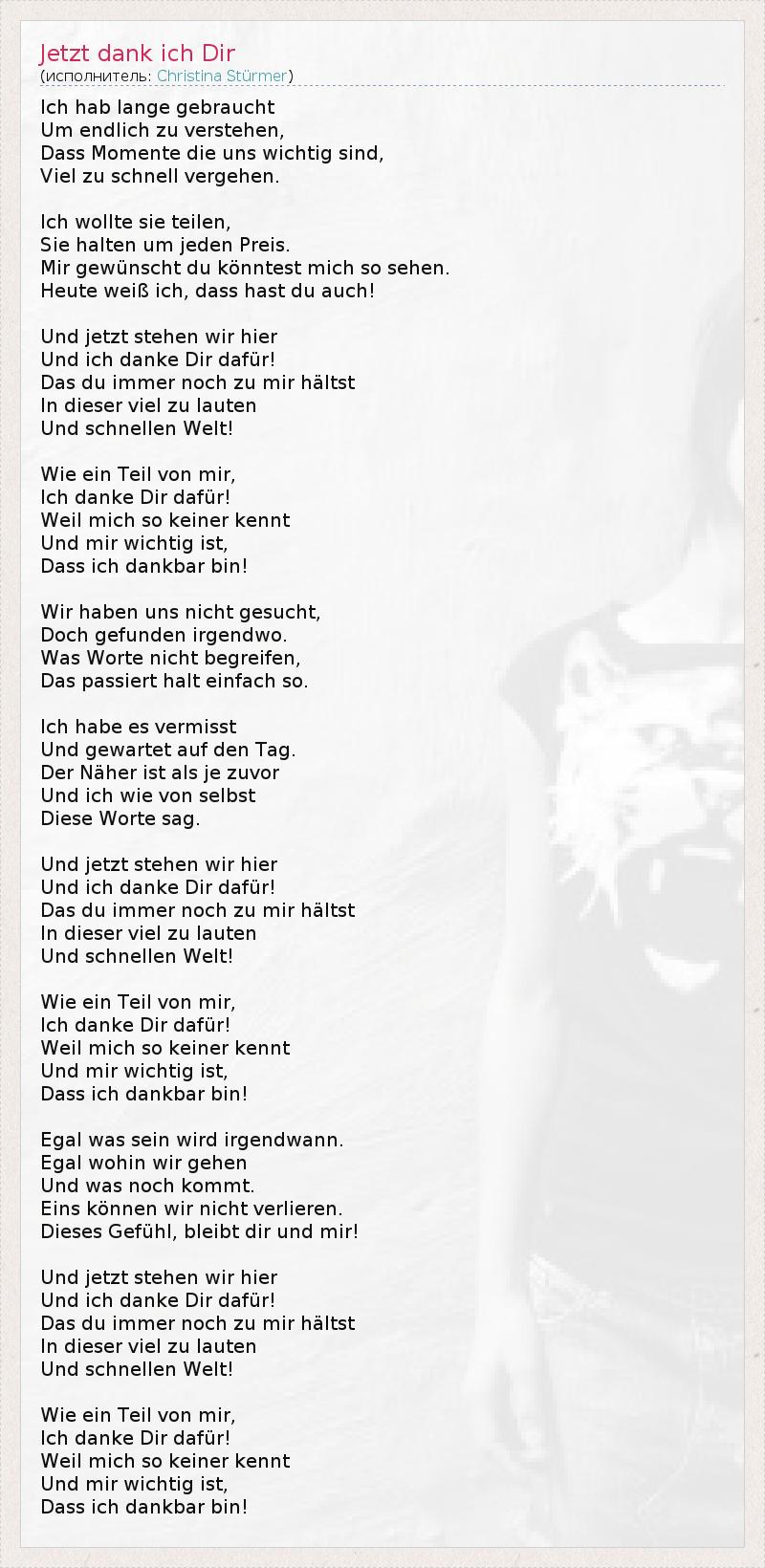 А как ты думаешь, о чем песня "Jetzt dank ich Dir" ?
