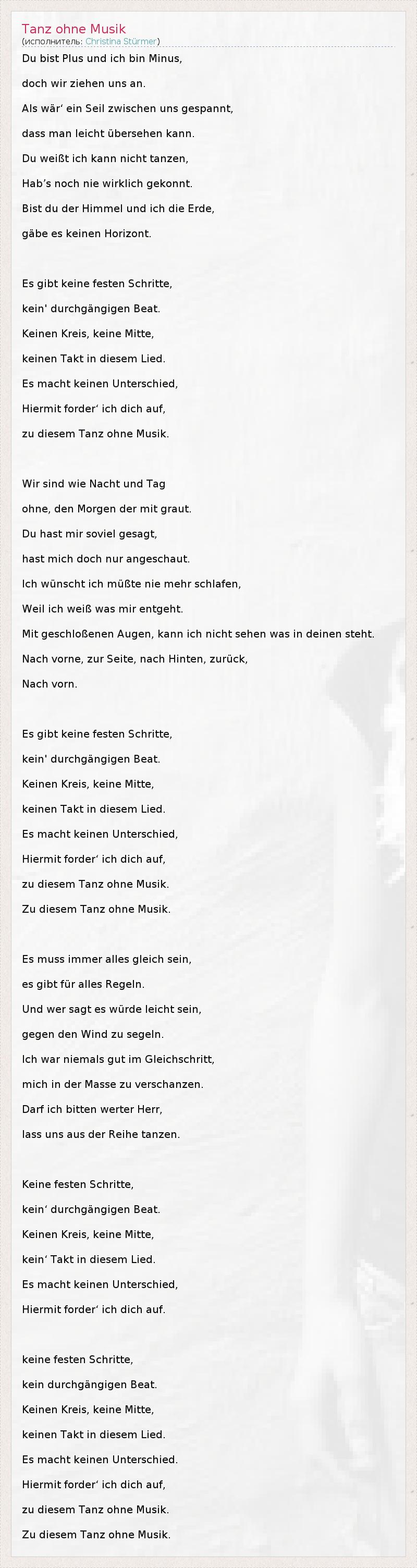 А как ты думаешь, о чем песня "Tanz ohne Musik" ?