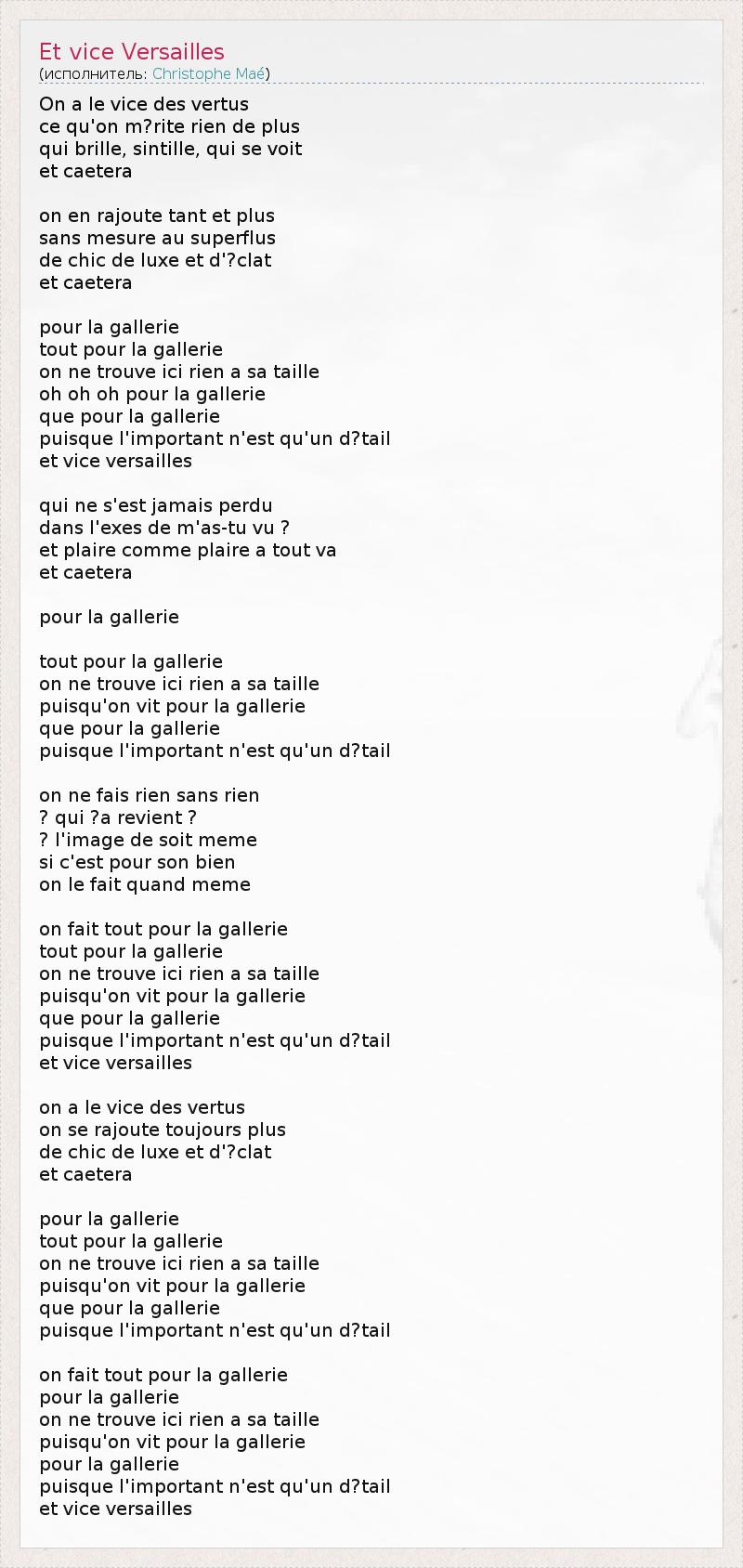 А как ты думаешь, о чем песня "Et vice Versailles" ?