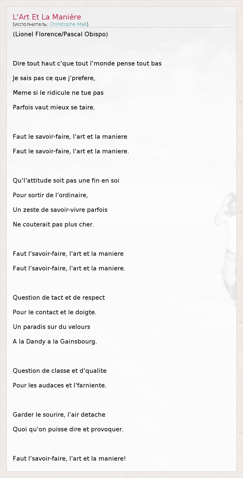 А как ты думаешь, о чем песня "L'Art Et La Manière" ?