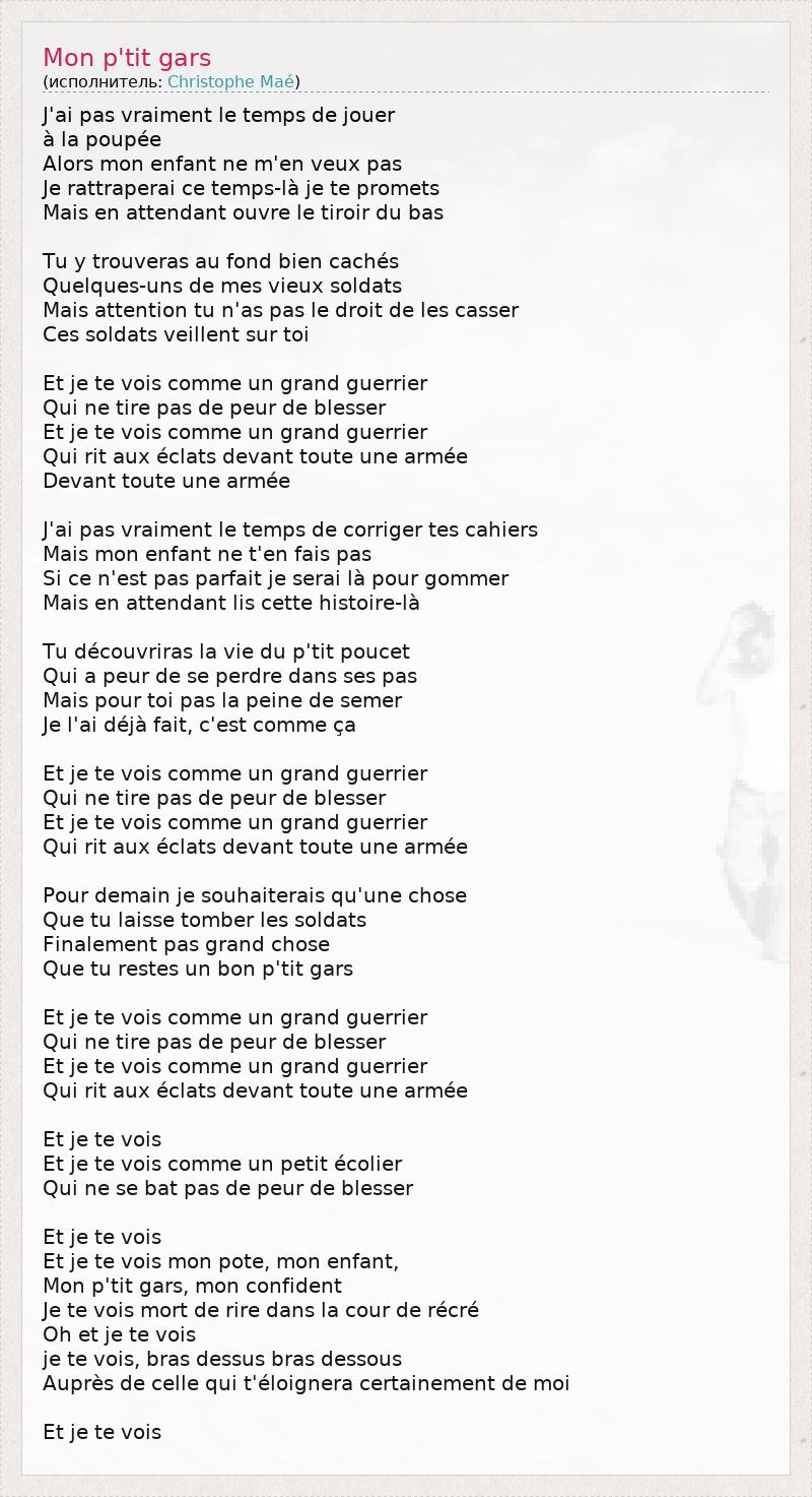 А как ты думаешь, о чем песня "Mon p'tit gars" ?