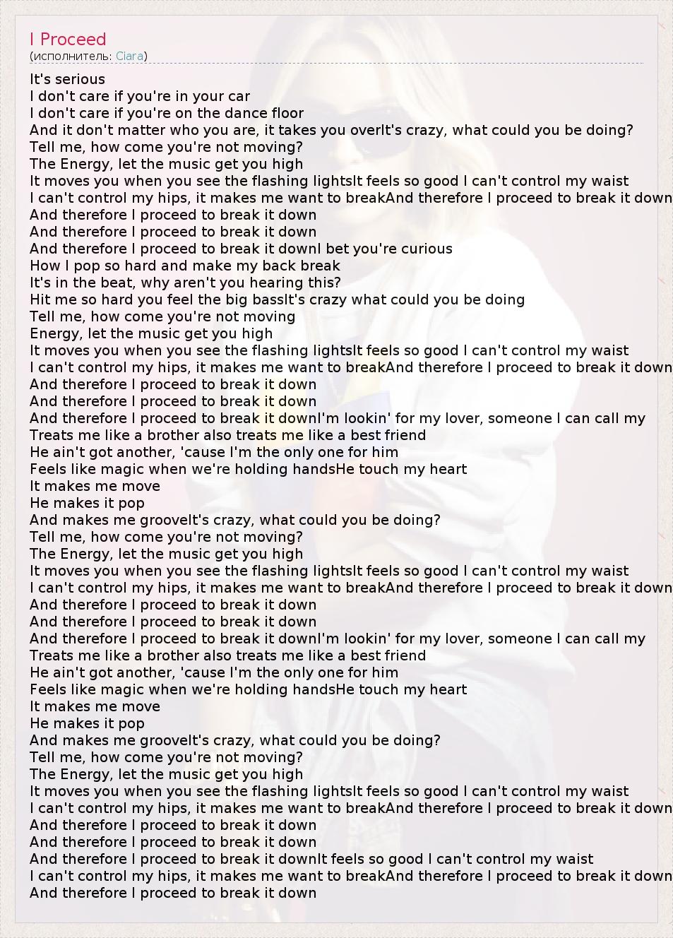 And therefore I proceed to break it downIt feels so good I can't control my waist