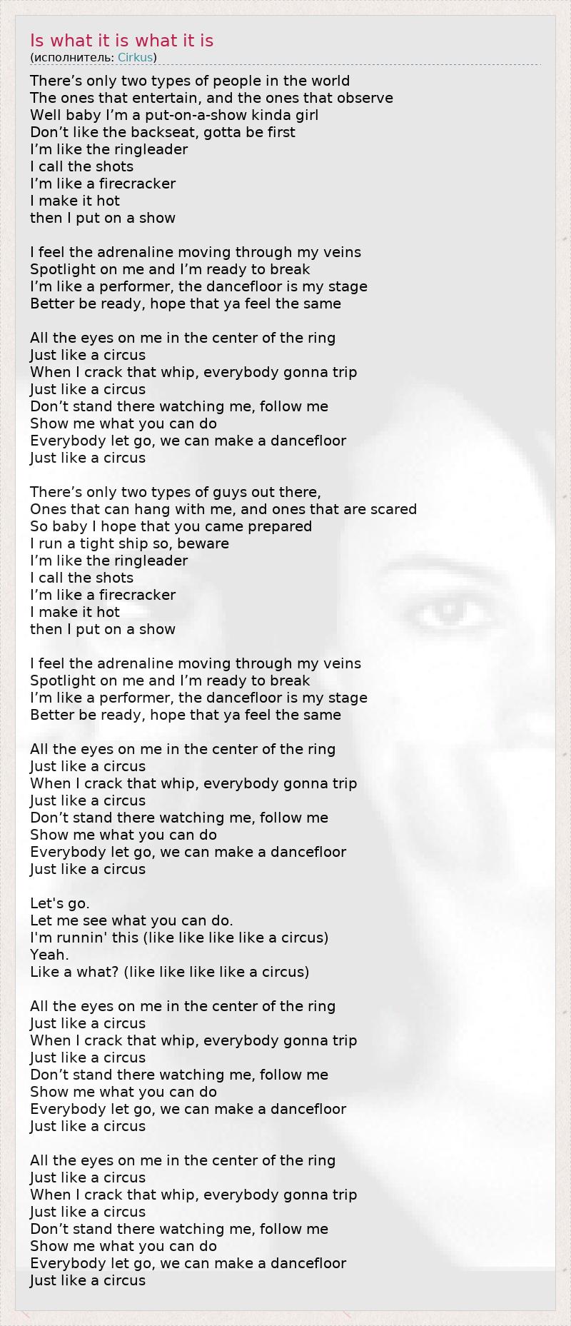 А как ты думаешь, о чем песня "Is what it is what it is" ?