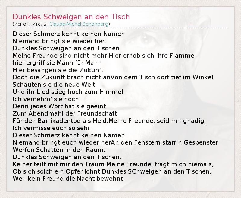 А как ты думаешь, о чем песня "Dunkles Schweigen an den Tisch" ?