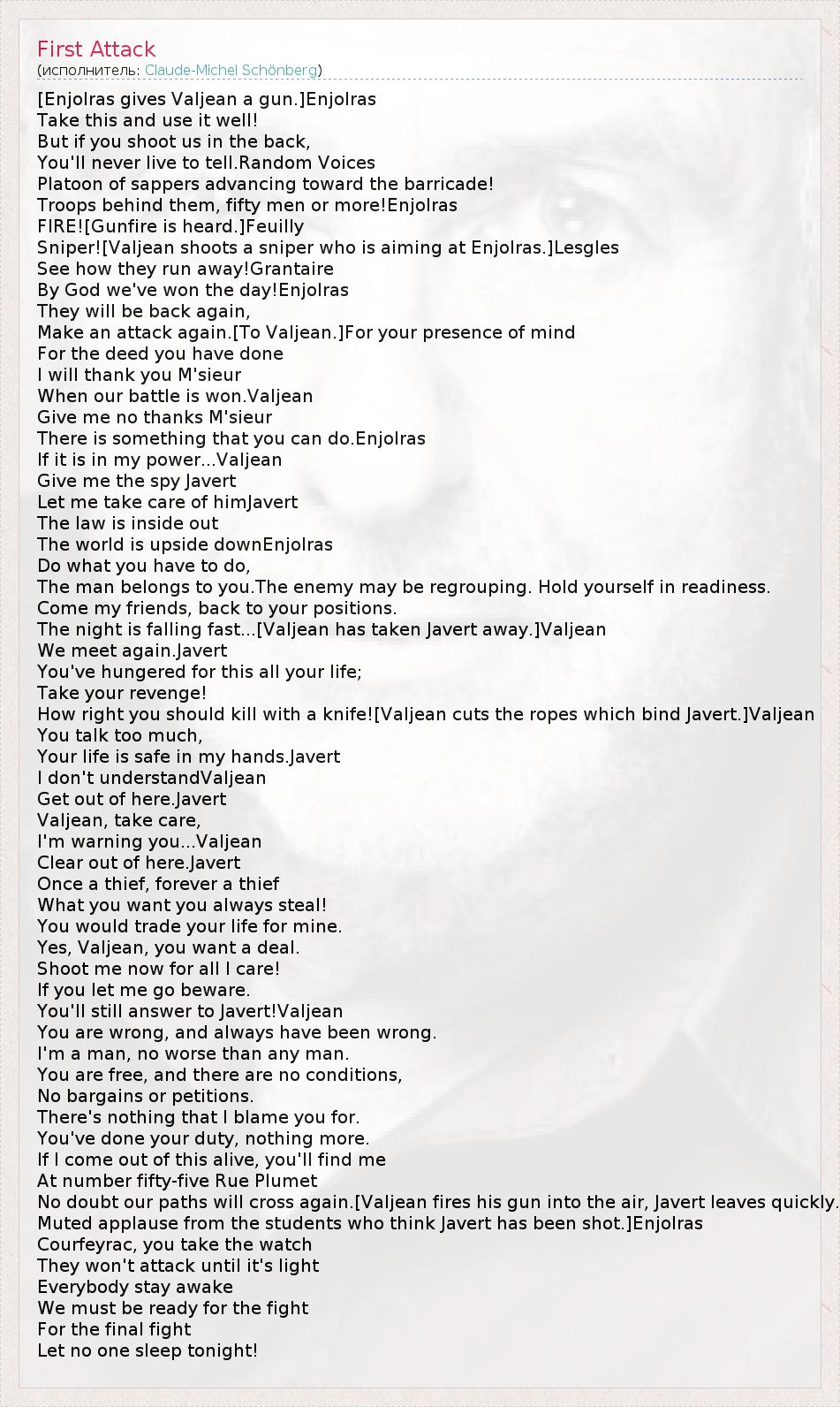 Make an attack again.[To Valjean.]For your presence of mind