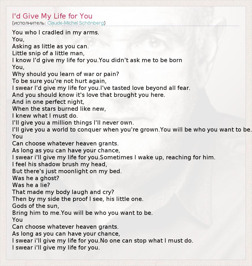 А как ты думаешь, о чем песня "I'd Give My Life for You" ?
