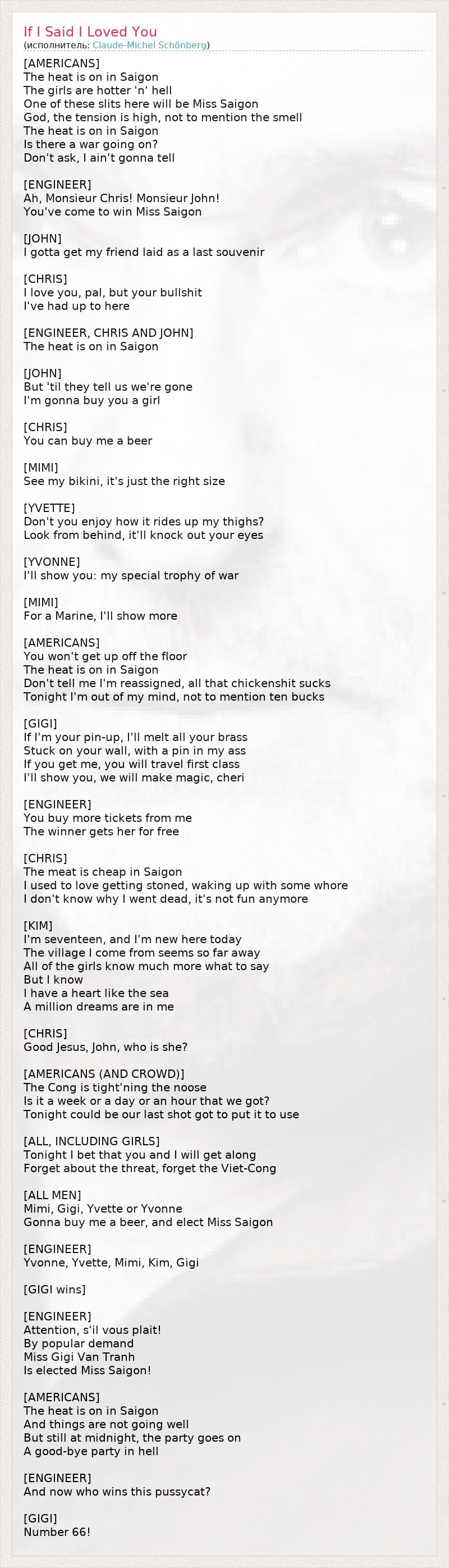 А как ты думаешь, о чем песня "If I Said I Loved You" ?
