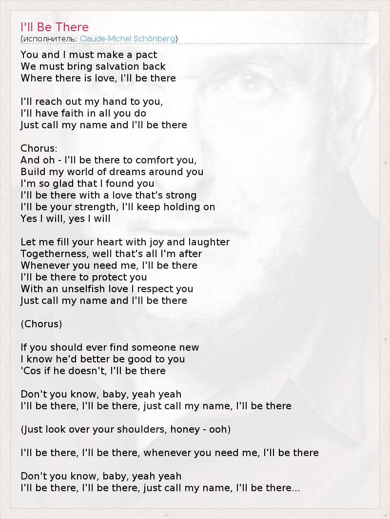 Я буду рядом. Я буду рядом. Просто, назови моё имя, я буду рядом.