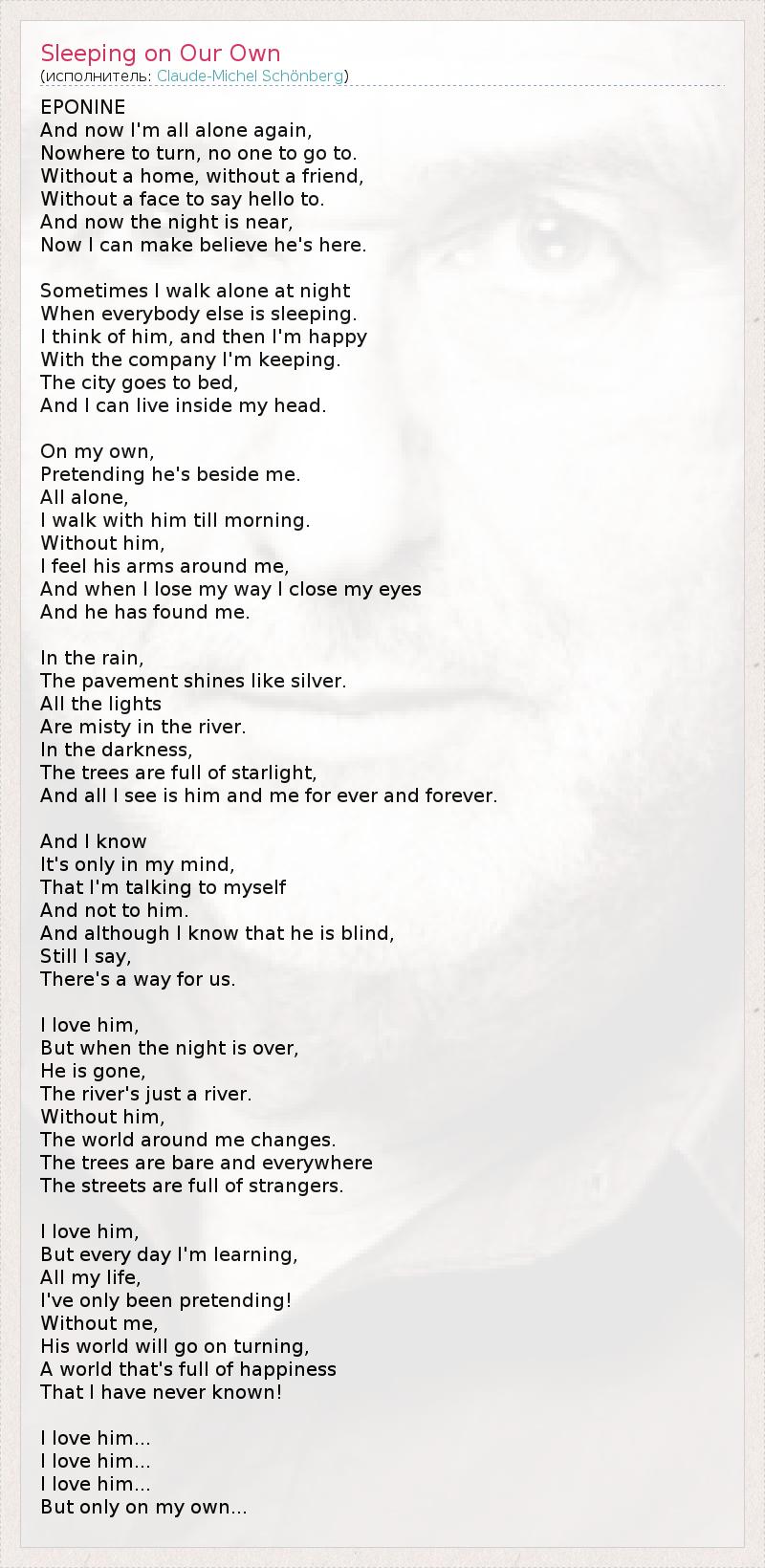 А как ты думаешь, о чем песня "Sleeping on Our Own" ?