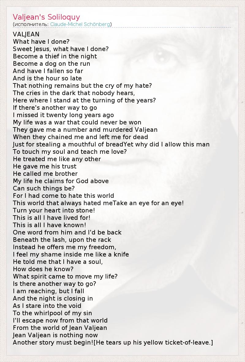 А как ты думаешь, о чем песня "Valjean's Soliloquy" ?