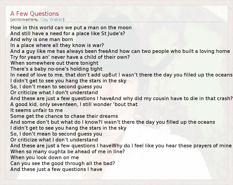 А как ты думаешь, о чем песня "A Few Questions" ?