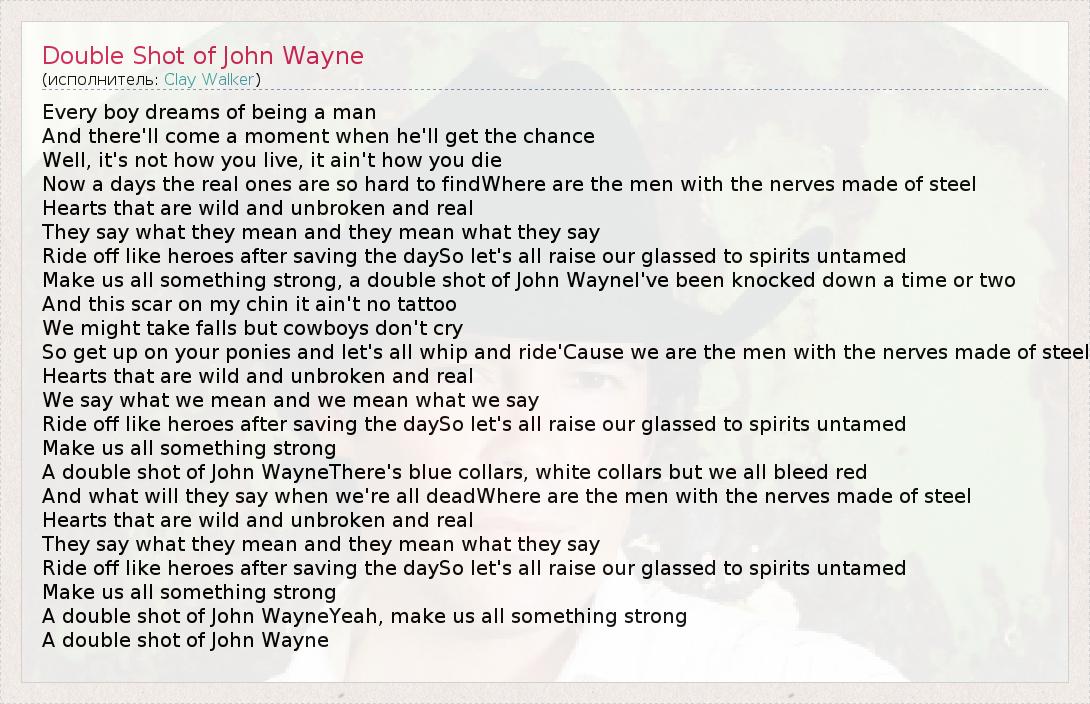А как ты думаешь, о чем песня "Double Shot of John Wayne" ?