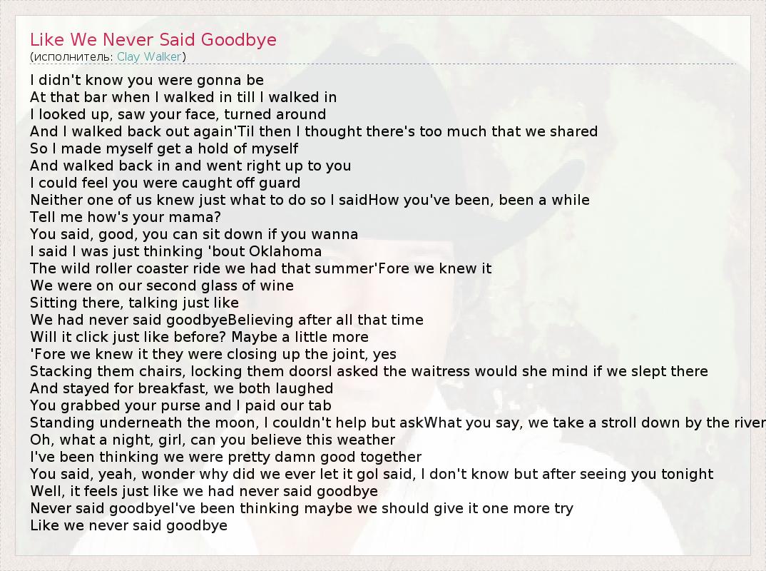 ГлавнаяИсполнителиClay WalkerLike We Never Said Goodbye