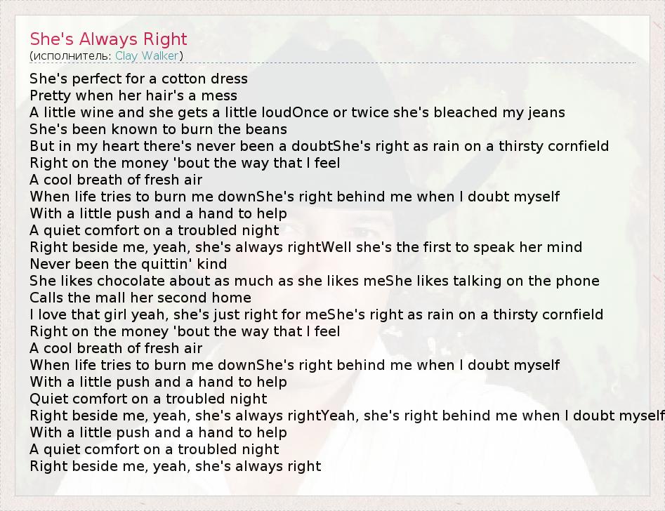 А как ты думаешь, о чем песня "She's Always Right" ?