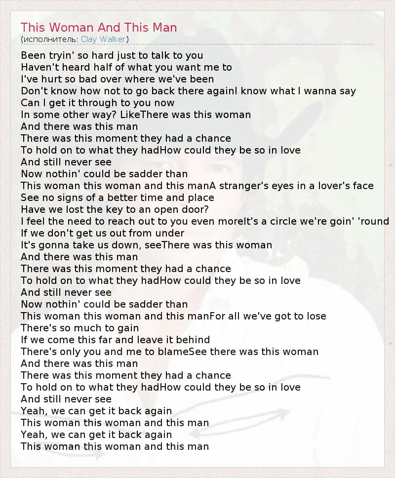 А как ты думаешь, о чем песня "This Woman And This Man" ?