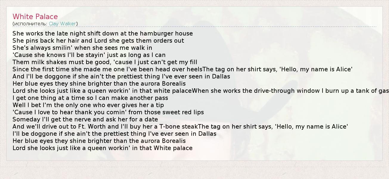 А как ты думаешь, о чем песня "White Palace" ?