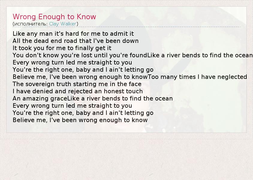 А как ты думаешь, о чем песня "Wrong Enough to Know" ?